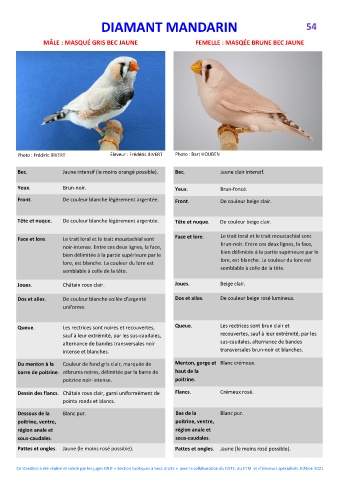 Ce standard a été réalisé et validé par les juges CNJF « Section Exotiques à becs droits » avec la collaboration du CGTE, du CTM et d’éleveurs spécialisés. Edition 2021
